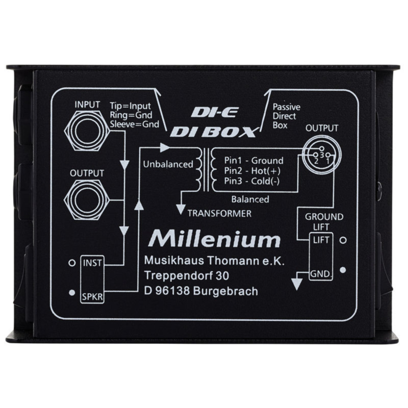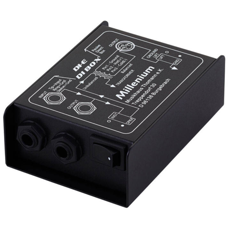 Millenium DI-E — пассивный DI-бокс, предназначенный для надёжной передачи инструментального сигнала без потерь.
