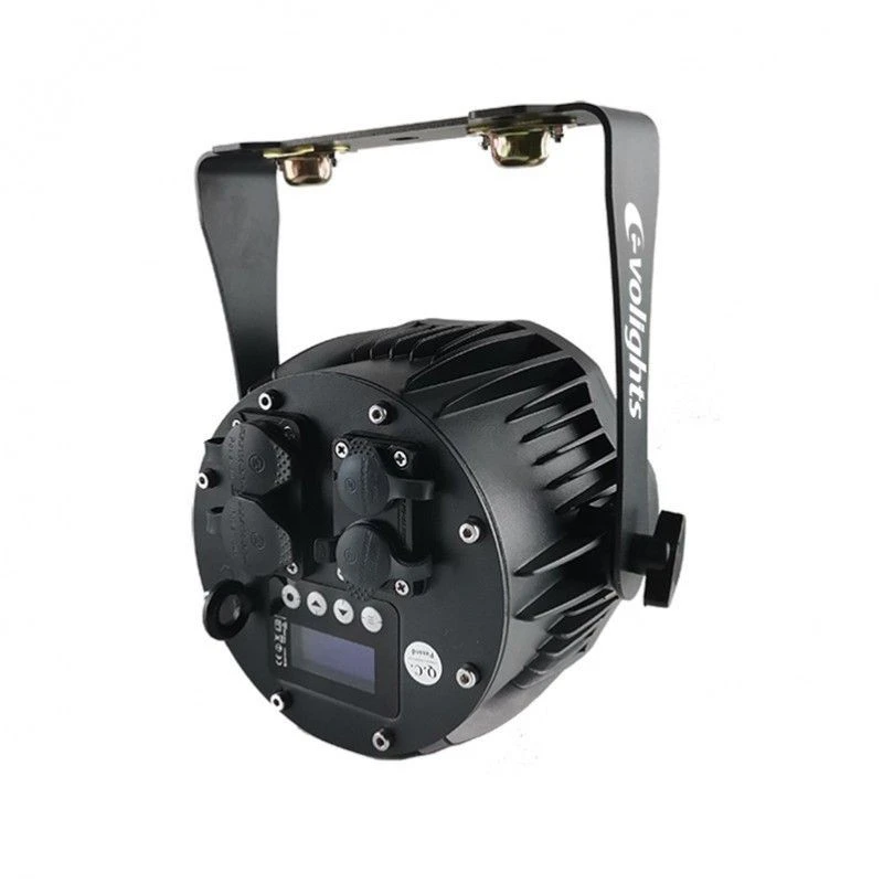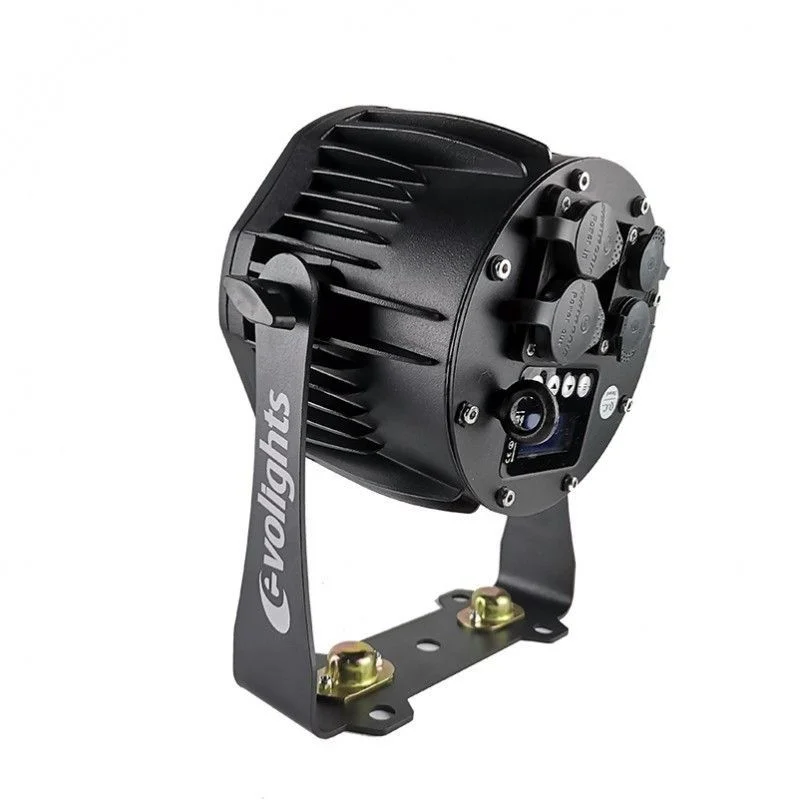 Evolights Glacier 7 RGBWA+UV – профессиональный светодиодный прожектор для внутреннего и наружного применения, для открытых сцен, концертов, фестивалей и мероприятий, театра и телевидения, а также для уличной архитектурной подсветки, с корпусом повышенной защиты (IP65), оснащенный 7 мощными 10-ваттными светодиодами с полноцветным и ультрафиолетовым свечением.