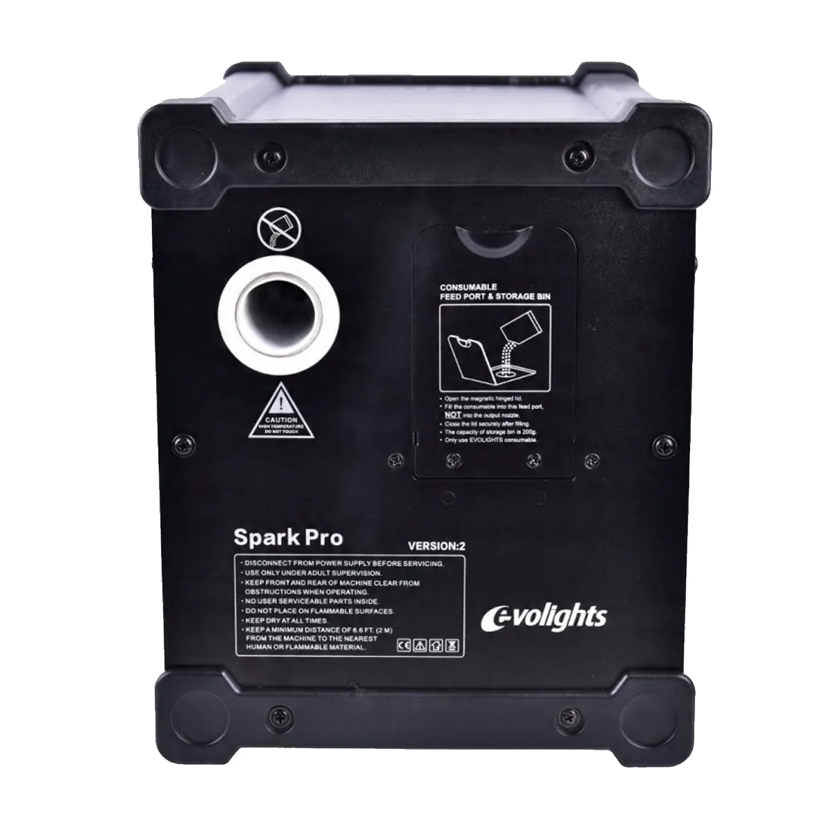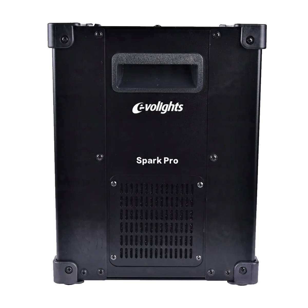Evolight Spark Pro — это сценическая машина, создающая эффект безопасных искр, визуально напоминающих фейерверк. Используется на концертах, свадьбах, шоу и презентациях, где нужен яркий акцент без применения пиротехники. Устройство работает на специальном порошке, не выделяет дым и запах, подходит для помещений. Управляется через DMX, позволяет регулировать высоту и плотность искр