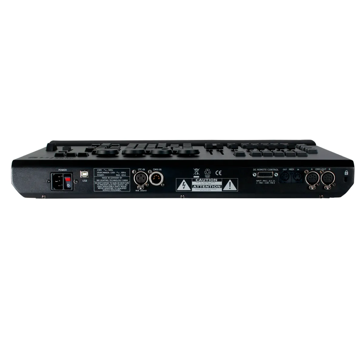 - Входные разъемы: 1 x XLR 5-pin (DMX), 1 x XLR 3-pin (SMPTE), 1 x DIN (MIDI), 1 x Sub-D 15pol (аналоговый пульт), 1 x IEC 60320 C13 / C14 (кабель IEC)