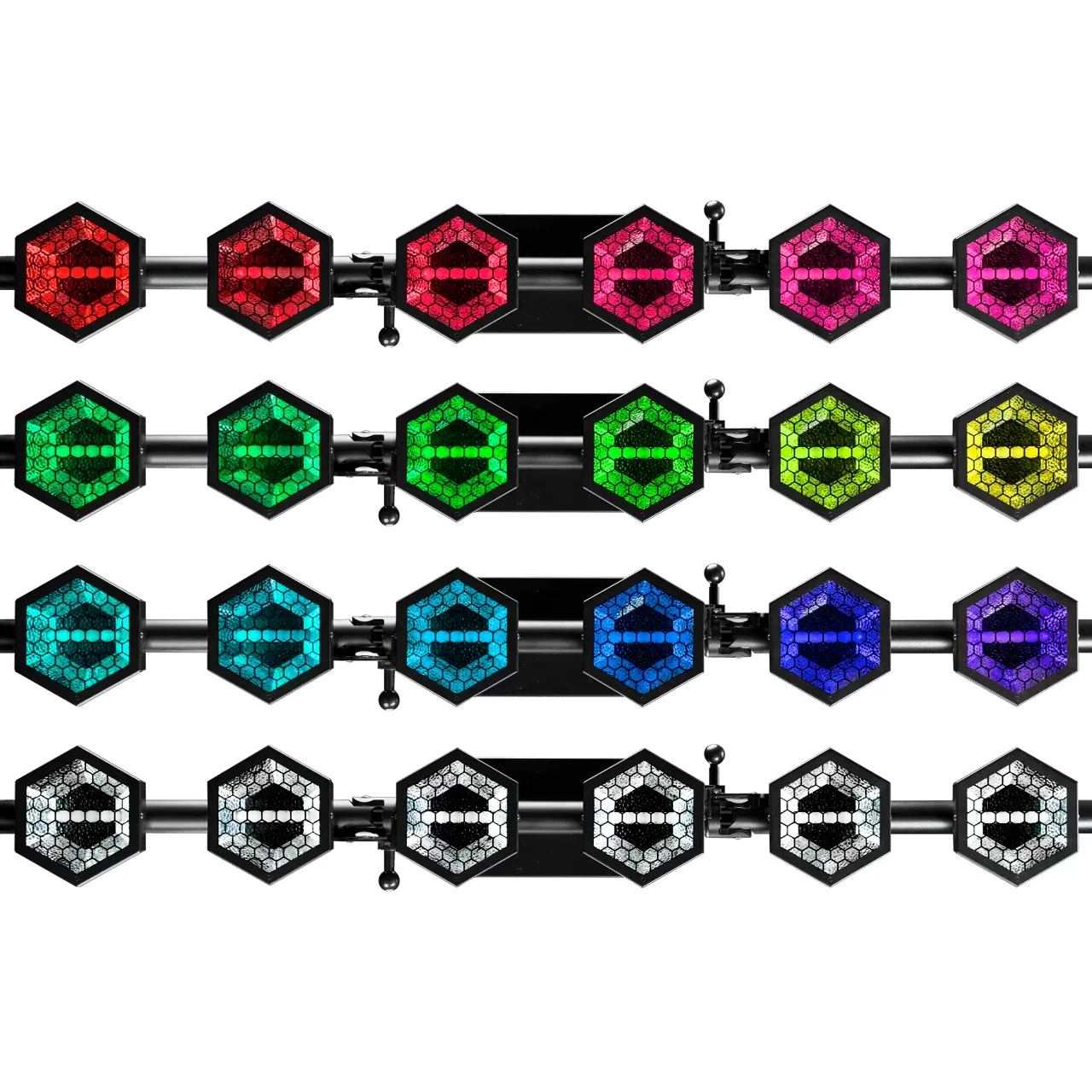 Световые элементы расположены линейно, что делает прибор идеальным для построения световых линий, рамок и визуальных конструкций.