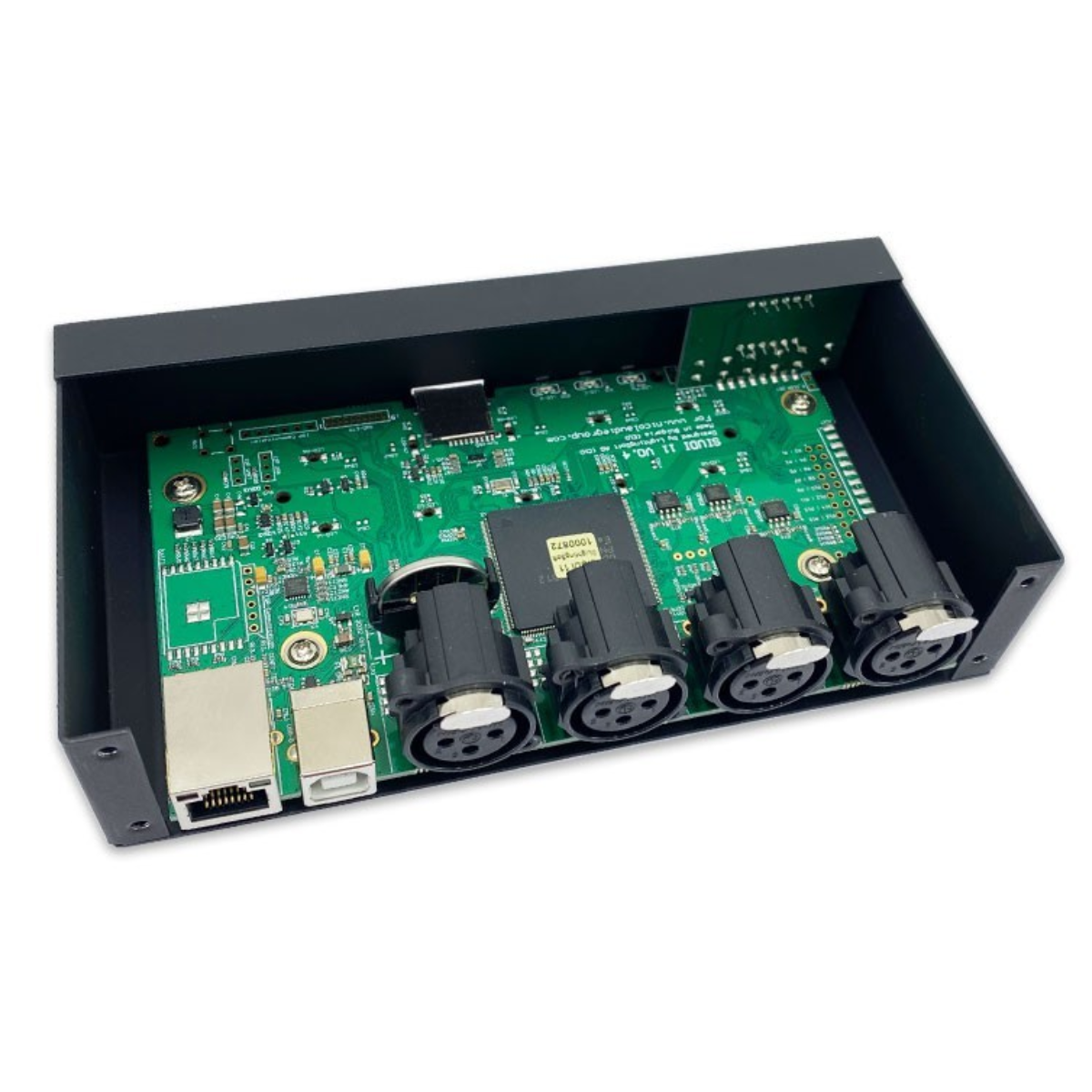 Оснащён четырьмя DMX-выходами, благодаря чему можно разделить управление по зонам или типам оборудования.